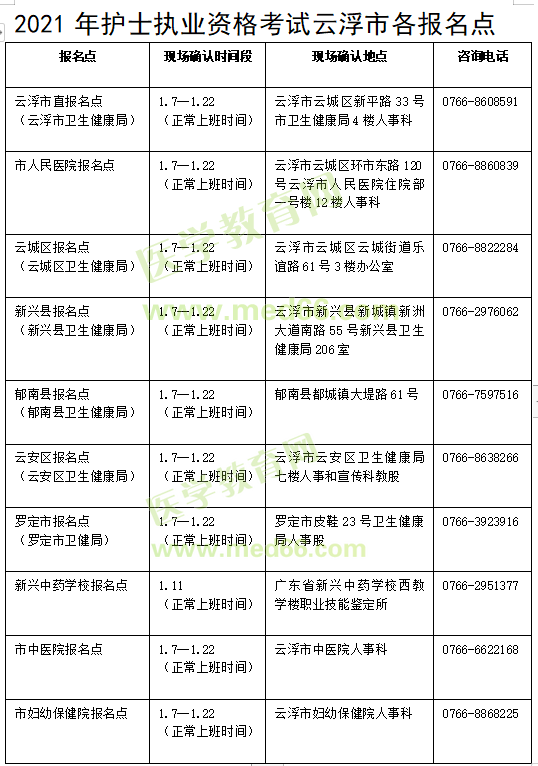 附件1:2021年護(hù)士執(zhí)業(yè)資格考試云浮市各報(bào)名點(diǎn)