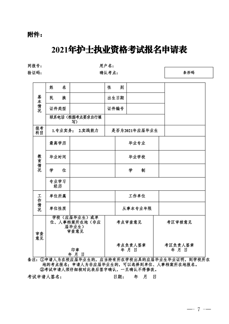 ①網(wǎng)上預(yù)報(bào)名后打印的《2021年護(hù)士執(zhí)業(yè)資格考試報(bào)名申請(qǐng)表》原件(見(jiàn)附件)。