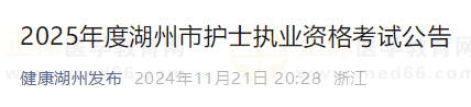 2025年度湖州考區(qū)護士執(zhí)業(yè)資格考試公告來啦?。♂t(yī)學(xué)教育網(wǎng)整理具體內(nèi)容如下: