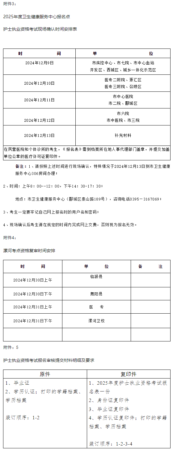2.現(xiàn)場確認(rèn):2024年12月4日—18日(臨潁縣、舞陽縣、醫(yī)專和漯河衛(wèi)生中等專業(yè)學(xué)校根據(jù)工作安排,自行確定現(xiàn)場確認(rèn)時(shí)間,請考生密切關(guān)注所在報(bào)名點(diǎn)的通知)。