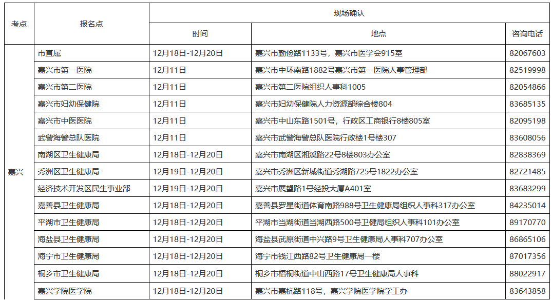 附件:2024年護(hù)士執(zhí)業(yè)資格考試嘉興考點(diǎn)各報(bào)名點(diǎn)現(xiàn)場(chǎng)確認(rèn)時(shí)間安排