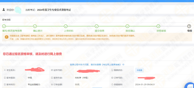 未開通網上繳費的考區(qū),【資格審核】節(jié)點變?yōu)榫G色即表示報名成功。