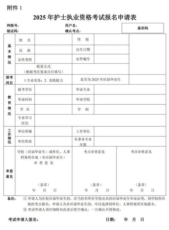 各單位組織符合條件的報考人員登錄國家衛(wèi)生健康委人才交流服務(wù)中心官網(wǎng)(www.21wecan.com),按要求完成網(wǎng)上預(yù)報名,并打印《2025年護士執(zhí)業(yè)資格考試報名申請表》(以下簡稱《報名申請表》)(附件1)。報考人員須對網(wǎng)上填報信息的真實性負責。網(wǎng)上預(yù)報名時間為2024年12月3日至16日。