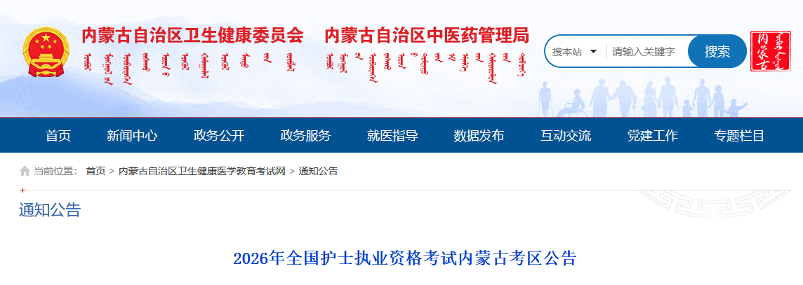 2026年全國護(hù)士執(zhí)業(yè)資格考試內(nèi)蒙古考區(qū)公告