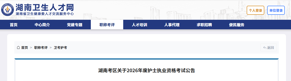 湖南考區(qū)關(guān)于2026年度護士執(zhí)業(yè)資格考試公告