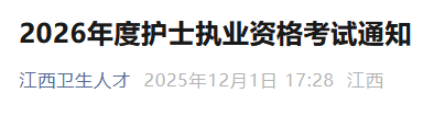 - · 2026年度江西省護士執(zhí)業(yè)資格考試通知
