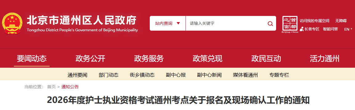 北京通州考點2026年護士執(zhí)業(yè)資格報名及現(xiàn)場確認通知