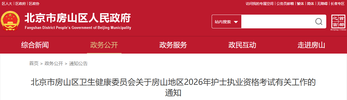 北京市房山區(qū)2026年護(hù)士執(zhí)業(yè)資格考試通知