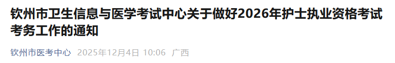 廣西欽州市2026年護(hù)士執(zhí)業(yè)資格考試通知