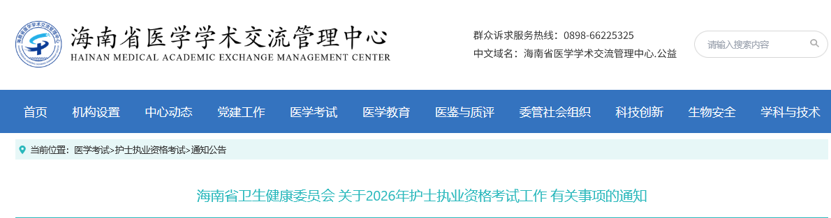 海南省衛(wèi)生健康委員會(huì)關(guān)于2026年護(hù)士執(zhí)業(yè)資格考試工作有關(guān)事項(xiàng)的通知