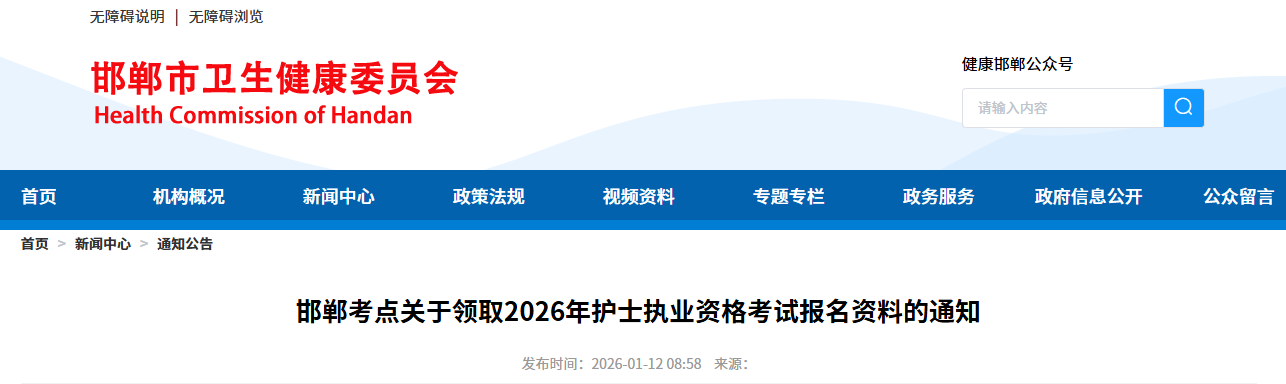 河北邯鄲考點領(lǐng)取2026年護士執(zhí)業(yè)資格考試報名資料通知,正保醫(yī)學(xué)教育網(wǎng)小編整理內(nèi)容如下: