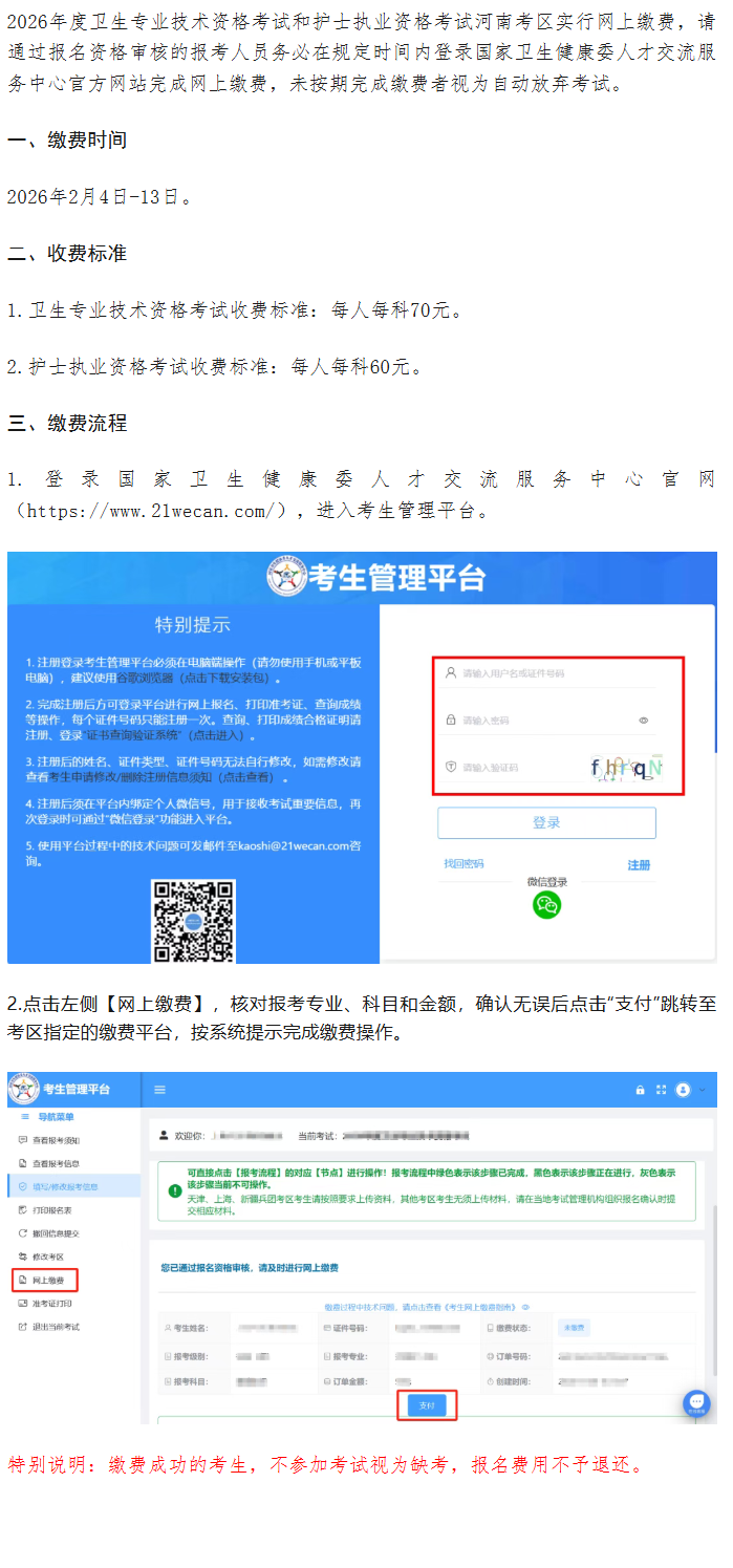 河南考區(qū)2026年度護(hù)士執(zhí)業(yè)資格考試網(wǎng)上繳費(fèi)溫馨提醒