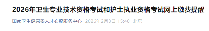 【官方】2026年護(hù)士執(zhí)業(yè)資格考試網(wǎng)上繳費(fèi)提醒