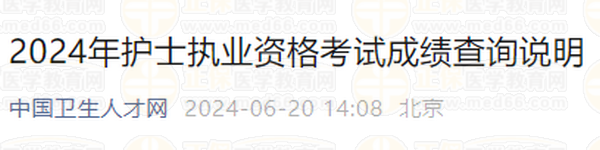 2024年6月20日護(hù)士執(zhí)業(yè)資格考試成績開放查詢,考生可登錄國家衛(wèi)生健康委人才交流服務(wù)中心網(wǎng)站進(jìn)行查詢,醫(yī)學(xué)教育網(wǎng)小編整理內(nèi)容如下:
