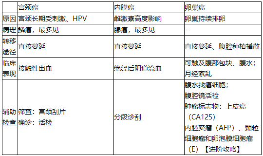 宮頸癌、內(nèi)膜癌、卵巢腫瘤知識點總結