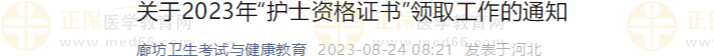 廊坊關(guān)于2023年護士資格證書領(lǐng)取工作的通知