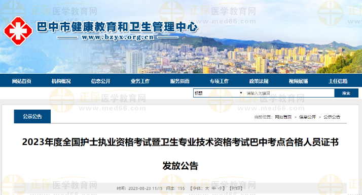 巴中市2023年護(hù)士執(zhí)業(yè)資格考試合格人員證書發(fā)放公告