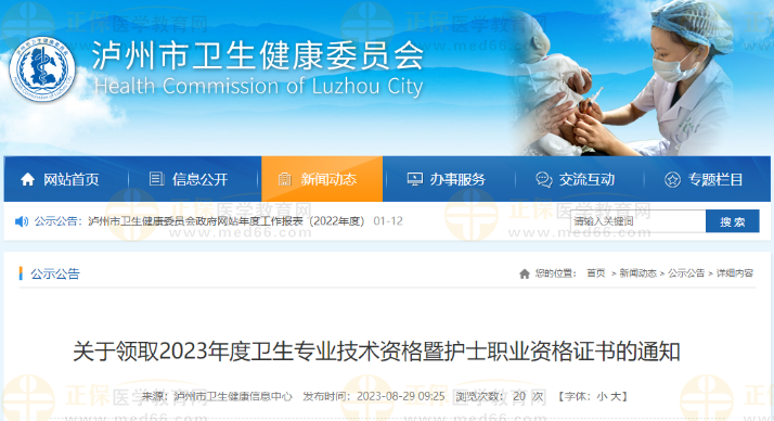 瀘州市關(guān)于領(lǐng)取2023年護(hù)士職業(yè)資格證書的通知