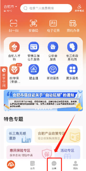 1.考試合格考生登錄皖事通APP,關(guān)注“消息”,如下圖。