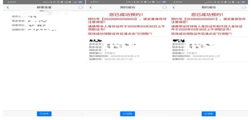 4、圖為郵寄、本人、非本人預約成功界面