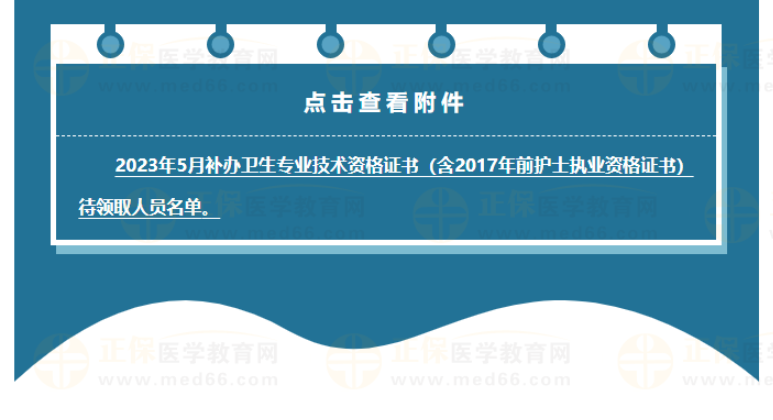 附件:2023年5月補辦衛(wèi)生專業(yè)技術(shù)資格證書(含2017年前護士執(zhí)業(yè)資格證書)待領(lǐng)取人員名單。