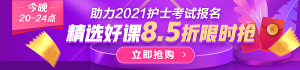 今晚(13日)20:00-24:00購(gòu)買2021護(hù)士考試輔導(dǎo)高效定制班、無憂實(shí)驗(yàn)班享受8.5折特惠,限時(shí)4個(gè)小時(shí),想跟著網(wǎng)校專業(yè)老師一起備戰(zhàn)沖刺2021護(hù)士考試的各位考生請(qǐng)千萬(wàn)不要錯(cuò)過!