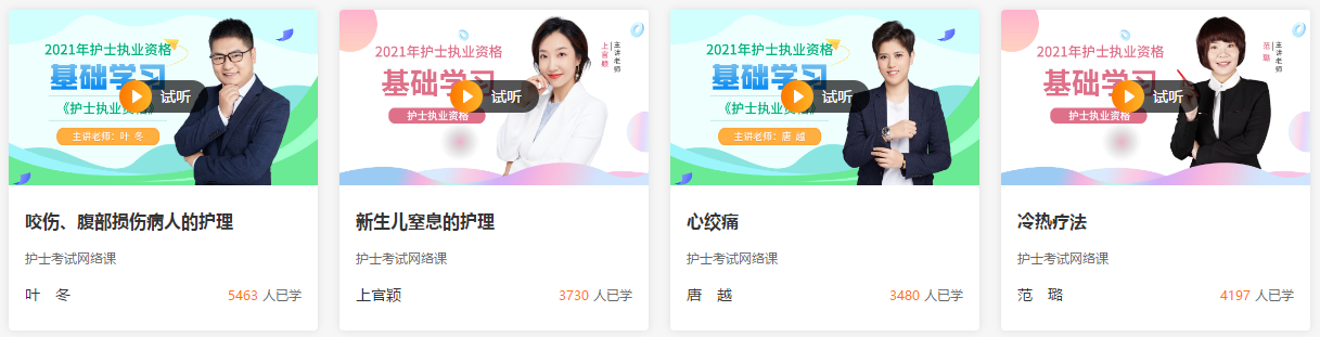 以上就是“助戰(zhàn)2022護(hù)士考試-護(hù)士培訓(xùn)課程免費試聽”的全部內(nèi)容了,如果您覺得這篇文章有所幫助,就趕快分享給身邊準(zhǔn)備參加2022年護(hù)士考試的朋友參考吧!