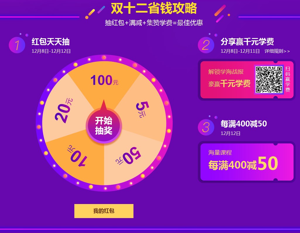 禮炮第二響:雙十二省錢攻略---抽紅包+滿減+集贊學(xué)費(fèi)=最佳優(yōu)惠