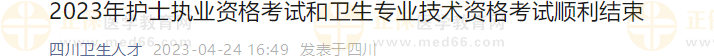 四川衛(wèi)生人才發(fā)布2023年護(hù)士執(zhí)業(yè)資格考試和衛(wèi)生專業(yè)技術(shù)資格考試順利結(jié)束通知,醫(yī)學(xué)教育網(wǎng)整理具體內(nèi)容如下: