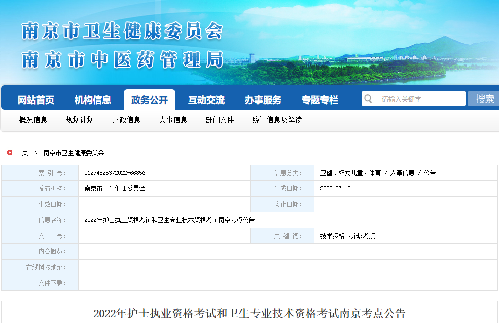 2022年護(hù)士執(zhí)業(yè)資格考試南京考點(diǎn)公告(7月13日)