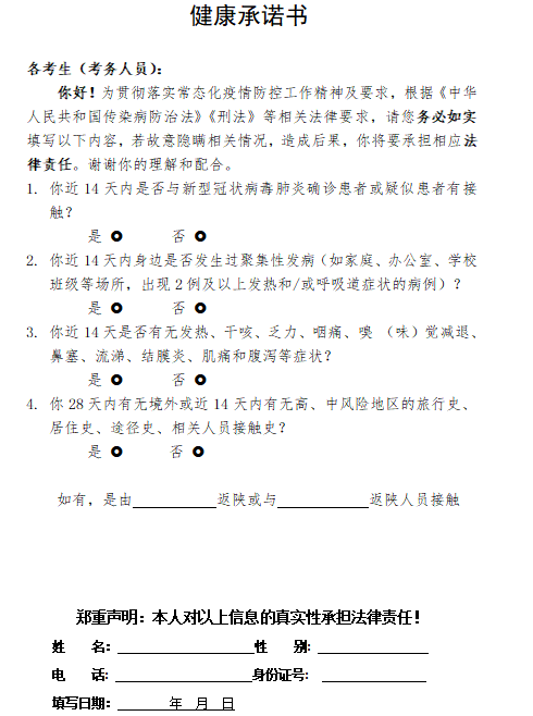 陜西2022年護(hù)士資格考試考生健康承諾書