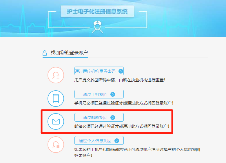 護(hù)士電子證照如何通過綁定的郵箱號找回密碼?