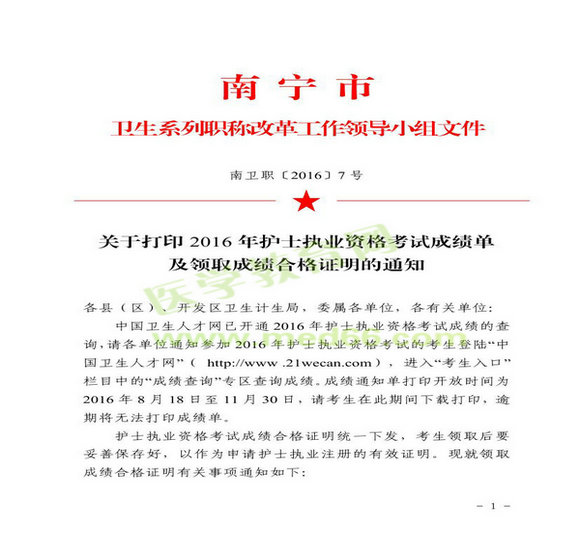 廣西南寧2016年護士考試成績單及合格證明現(xiàn)已開始領(lǐng)取,醫(yī)學|教育網(wǎng)搜集整理如下內(nèi)容,望廣大考生周知:
