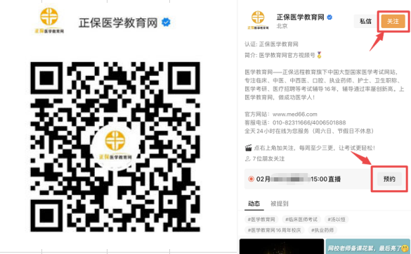 掃描下方二維碼,關(guān)注“正保醫(yī)學教育網(wǎng)”視頻號,選擇本場直播,點擊“預約”按鈕
