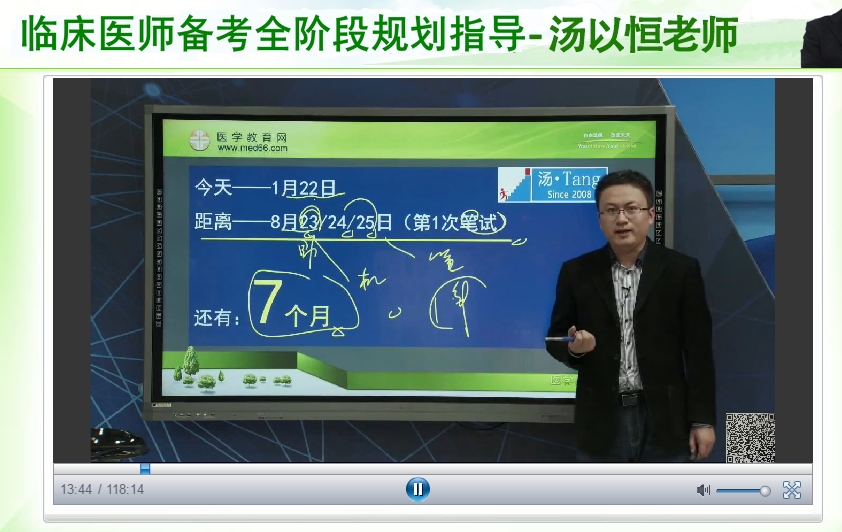 教師簡介:曾任北京某三甲醫(yī)院主治醫(yī)師,醫(yī)學碩士。自2008年起專業(yè)從事醫(yī)學考試研究與培訓。系醫(yī)學教育網(wǎng)獨家授課老師,夢想成真系列叢書主編。