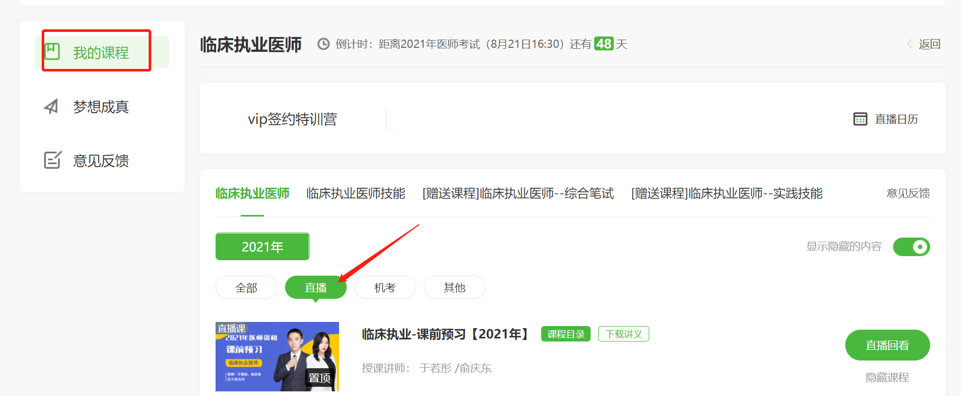 2021年臨床執(zhí)業(yè)/助理醫(yī)師VIP簽約特訓(xùn)營直播課表安排詳情