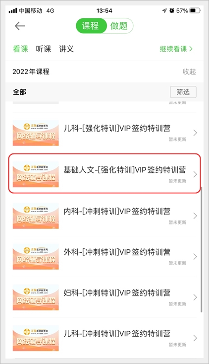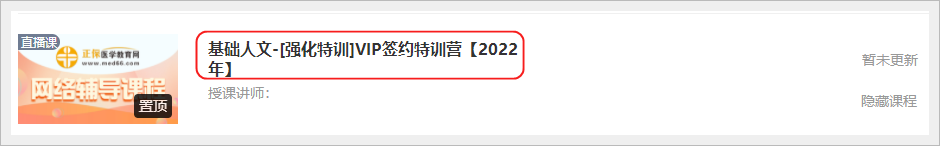 點(diǎn)擊“基礎(chǔ)人文-強(qiáng)化特訓(xùn)”,進(jìn)入直播入口,直播開(kāi)始前,截圖所示位置會(huì)更新直播入口: