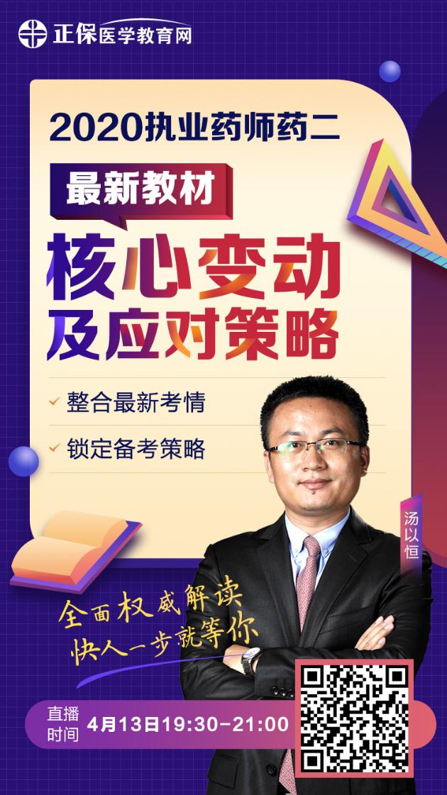 2020年執(zhí)業(yè)藥師考試教材終于公布!醫(yī)學(xué)教育網(wǎng)根據(jù)新版官方教材,連夜對比新舊教材,匯總了《藥學(xué)專業(yè)知識二》考試教材變動(dòng)內(nèi)容,考生在復(fù)習(xí)過程中該如何應(yīng)對這些變動(dòng)?醫(yī)學(xué)教育網(wǎng)老師湯以恒來教你!記得在規(guī)定時(shí)間內(nèi)觀看直播哦!