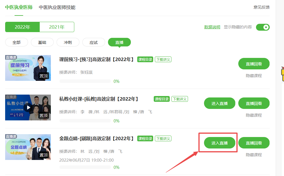 【直播課表】2022年中醫(yī)執(zhí)業(yè)/助理醫(yī)師高效定制班直播課表
