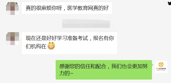 很多個人報名的考生更是可能因為報名時候的一個小疏忽就導(dǎo)致報名失敗,這個時候就顯示出有一個靠譜的報名機(jī)構(gòu)是多么的重要~快來看看近期小編收到的學(xué)員們對于醫(yī)學(xué)教育網(wǎng)的好評反饋吧~
