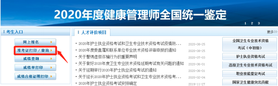 考生可于10月16-24日登陸中國衛(wèi)生人才網(wǎng)(www.21wecan.com)在“考生入口”欄,點擊“準(zhǔn)考證打印”。