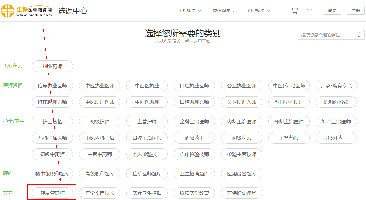 第二步:在選課中心頁面找選擇“健康管理師”;