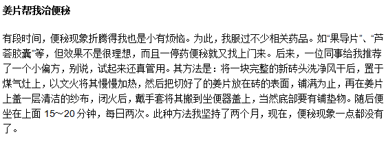 便秘會導(dǎo)致失眠,而便秘藥物的副作用也是挺大,我試著在睡前服用一定量的其他藥物.試了一段時間后,總覺得次日上午打不起精神。為什么便秘不能被解決呢?醫(yī)學(xué)教育網(wǎng)編輯教你一個方法治療便秘。