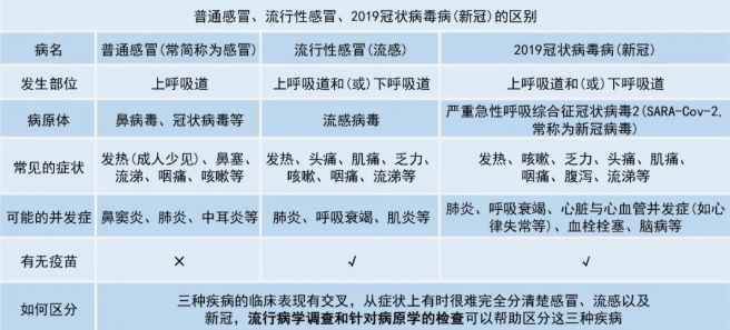 冬季本是感冒、流感高發(fā)期,加之新冠病毒感染的肺炎疫情來勢兇猛,使許多居家隔離、且有感冒癥狀的人們產(chǎn)生恐慌情緒。有的自己胡亂吃藥不對癥導致感冒加重,有的干脆直接到就近醫(yī)院發(fā)熱門診就診,無謂加大了新冠病毒感染的機率?,F(xiàn)將感冒的種類、區(qū)別及治療方法與新冠病毒感染的肺炎癥狀做一個比較,方便大家識別。