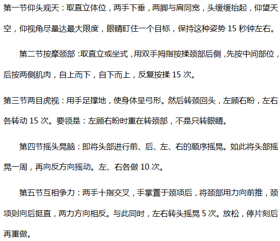 頸部及背部的椎間盤因失去彈性而變得脆弱,很容易發(fā)生破裂。小編介紹一套頸部保健操,可使頸部活動靈活有力,頸部皮膚不松弛,對防治頸椎病,肩周炎等疾病有良好療效。