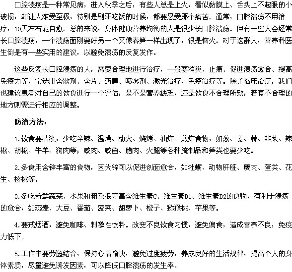 以上就是“反復性口腔潰瘍患者要注意飲食清淡補充維生素”的內(nèi)容,相信大家已經(jīng)了解,希望對大家有所幫助。