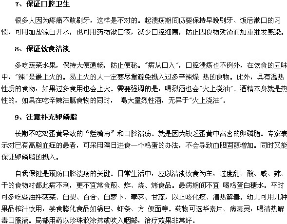 以上是“遠(yuǎn)離口腔潰瘍的8個(gè)保證1個(gè)注意”的相關(guān)內(nèi)容,希望對大家有所幫助。遠(yuǎn)離口腔潰瘍平時(shí)一定要多注意的口腔衛(wèi)生,勤漱口,多鍛煉,提高自身免疫力,這比一切藥物治療都有效!