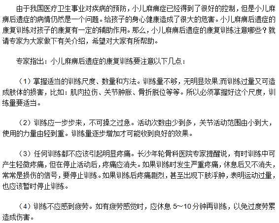 以上就是專家對小兒麻痹后遺癥的康復(fù)訓(xùn)練注意事項的有關(guān)介紹,希望對大家以后的治療過程中有所幫助。針對小兒麻痹后遺癥這一遺留病種,專家們經(jīng)過多年的研究,已經(jīng)取得了很好的突破。