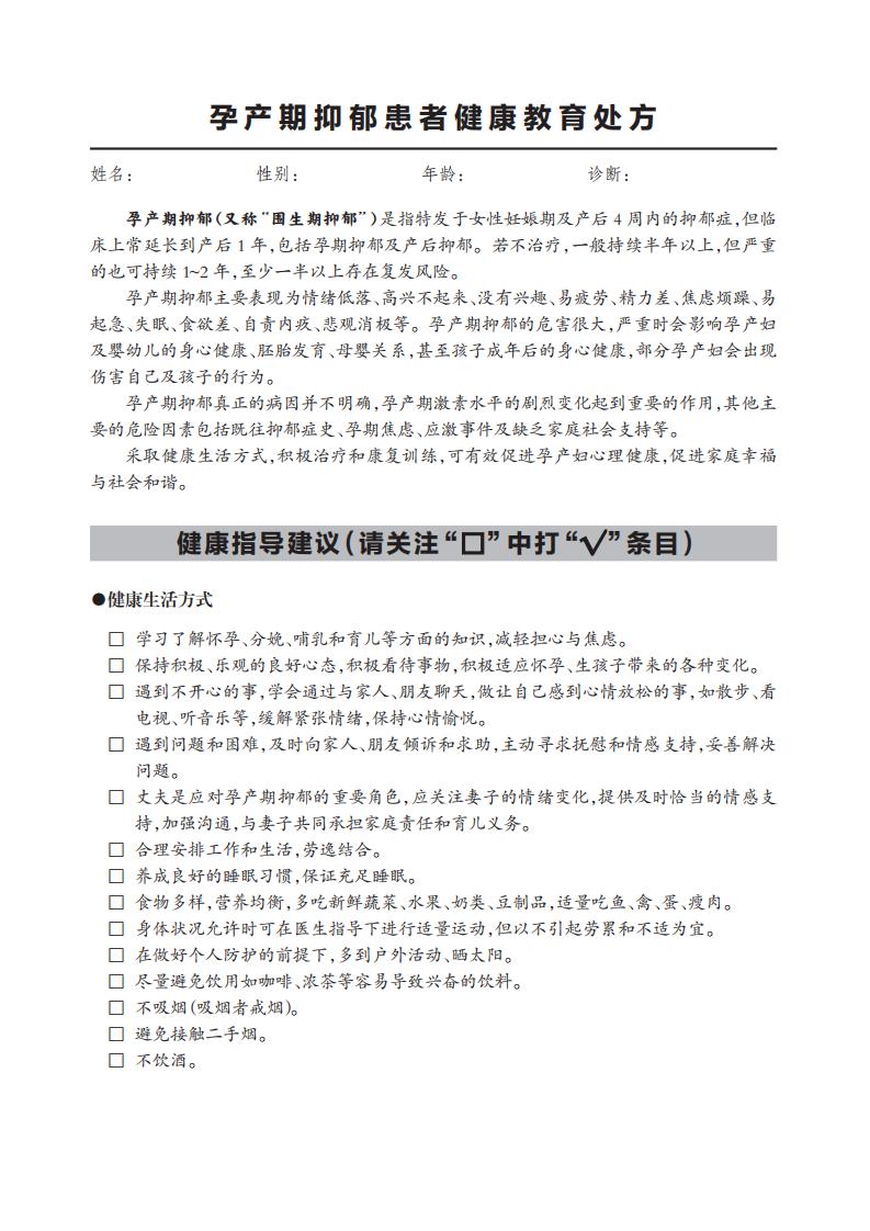 孕產(chǎn)期抑郁(又稱“圍生期抑郁”)是指特發(fā)于女性妊娠期及產(chǎn)后 4 周內(nèi)的抑郁癥,但臨 床上常延長(zhǎng)到產(chǎn)后 1 年,包括孕期抑郁及產(chǎn)后抑郁。若不治療,一般持續(xù)半年以上,但嚴(yán)重 的也可持續(xù) 1~2 年,至少一半以上存在復(fù)發(fā)風(fēng)險(xiǎn)。 孕產(chǎn)期抑郁主要表現(xiàn)為情緒低落、高興不起來(lái)、沒(méi)有興趣、易疲勞、精力差、焦慮煩躁、易 起急、失眠、食欲差、自責(zé)內(nèi)疚、悲觀消極等。