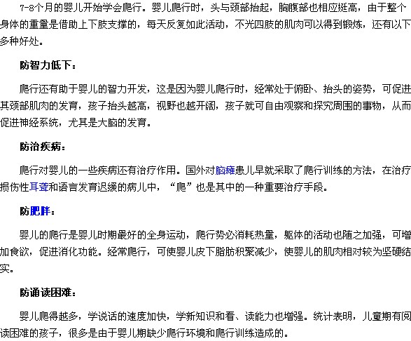 當(dāng)寶寶開始學(xué)習(xí)爬行的時(shí)候,不要因?yàn)橛X得地上臟或其它原因限制寶寶的行動(dòng)。因?yàn)閷殞毝嗯佬心軌蛴行П苊庵橇Φ拖碌陌l(fā)生,那么為什么寶寶多爬行能夠有效避免智力低下的發(fā)生呢?下面就讓醫(yī)學(xué)教育網(wǎng)小編為大家介紹如下: